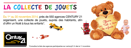 - Les équipes des 7 agences Century 21 du 15ème arrondissement prennent en charge la collecte des jouets (usagés pais en bon état) ;