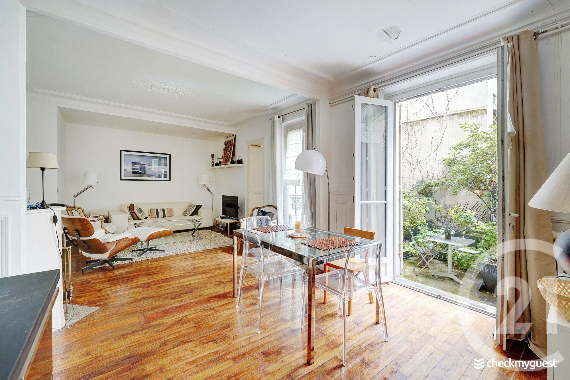 Atout rare : accès direct depuis l'appartement à une cour arborée et paisible.