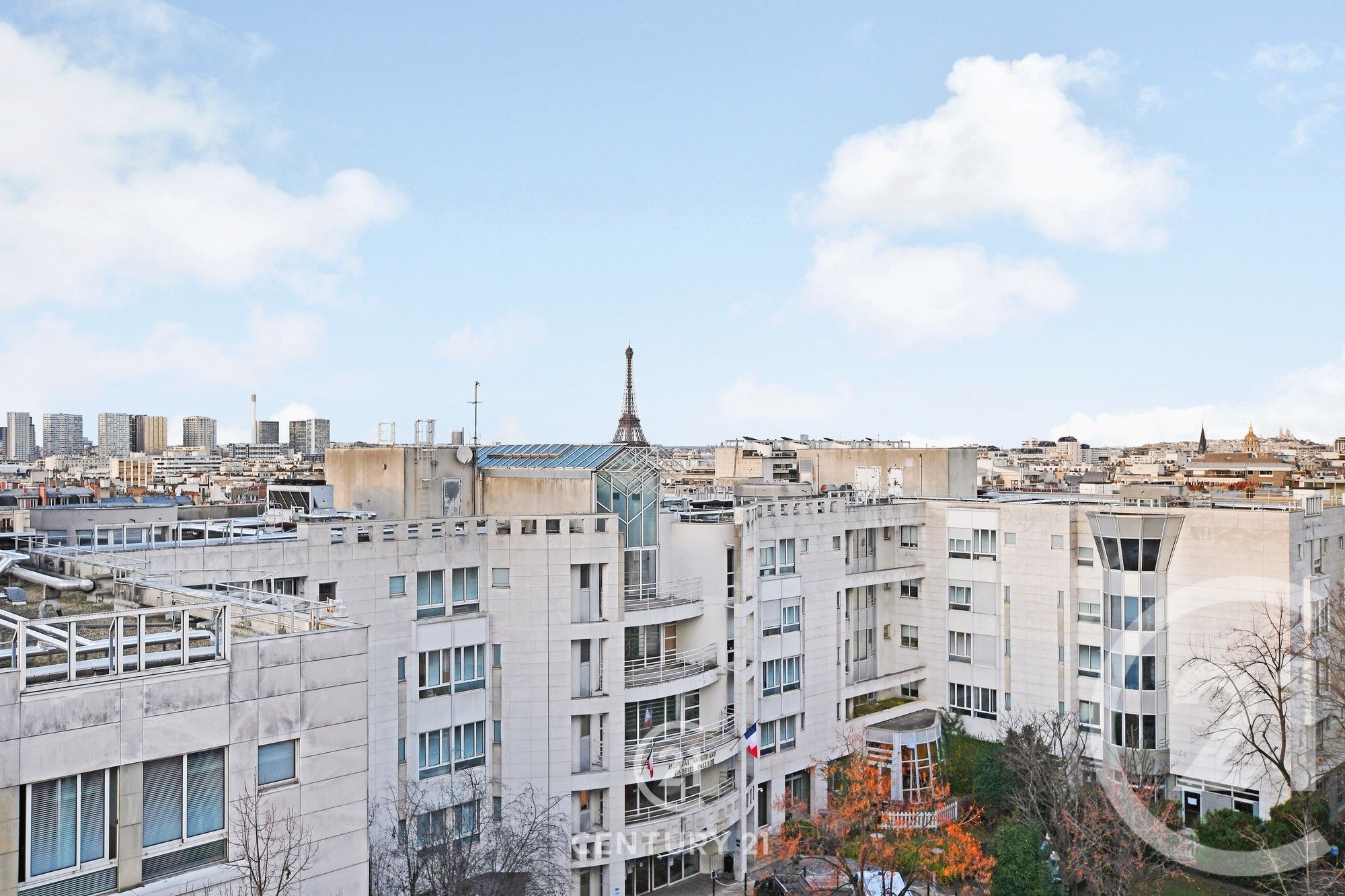 Situé au sixième et dernier étage d'un immeuble bien entretenu, dans une rue calme, cet appartement lumineux bénéficie d'une vue entièrement dégagée, offrant un panorama sur la Tour Eiffel.